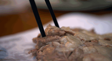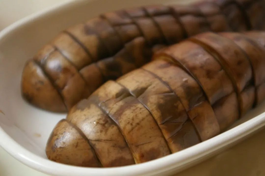 枫泾丁蹄以枫泾猪为原料,配合枫泾黄酒和枫泾酱油,才能烧制出最正宗的枫泾丁蹄。光是油光锃亮的色泽,就能让人食欲大增。34