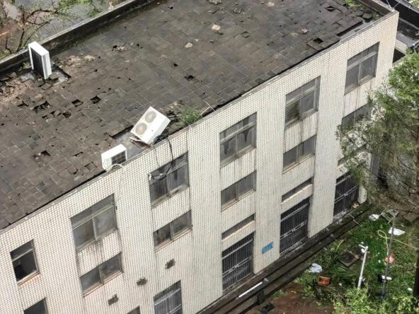 海口滨海大道一大楼玻璃幕墙破损(央广网记者 付美斌 摄)