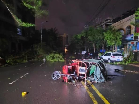 6日22时20分前后,台风“摩羯”(超强台风级)在广东省徐闻县角尾乡再次登陆,登陆时中心附近最大风力17级(58米/秒)。