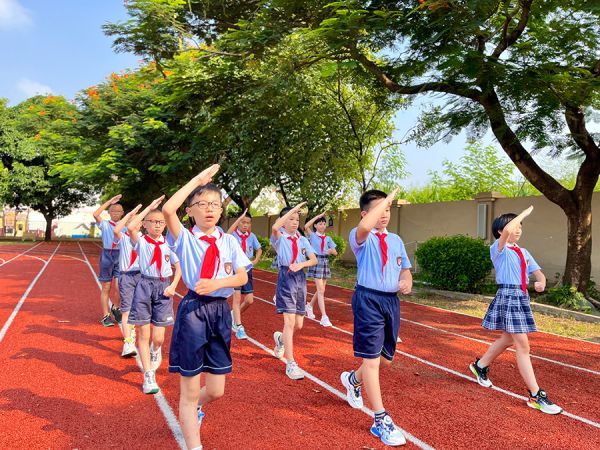 增城区天恩双语学校,红领巾列队敬礼朝气蓬勃 朱晴怡/摄