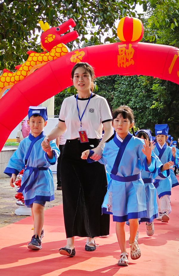 增城区永宁街中心小学,师长牵手领同学跨过“容融门” 江美环/摄