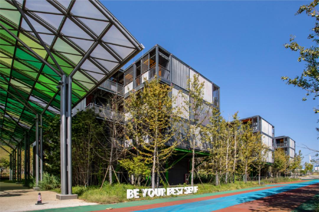 中国建科所属中国建筑设计研究院有限公司设计的景德镇圣莫妮卡学校采用轻介入、巧利用的策略,实现快速施工和绿色节能。一层架空层为钢框架结构,二至四层教学楼和宿舍楼采用工厂化生产、装配式施工、一体化装修可拆装的箱式钢结构模块,在工厂生产完成主体及内外装修,运往现场吊装,部分接口部位的内外装修、屋顶部分及防水等构造节点在工厂做好预留,现场完成安装。