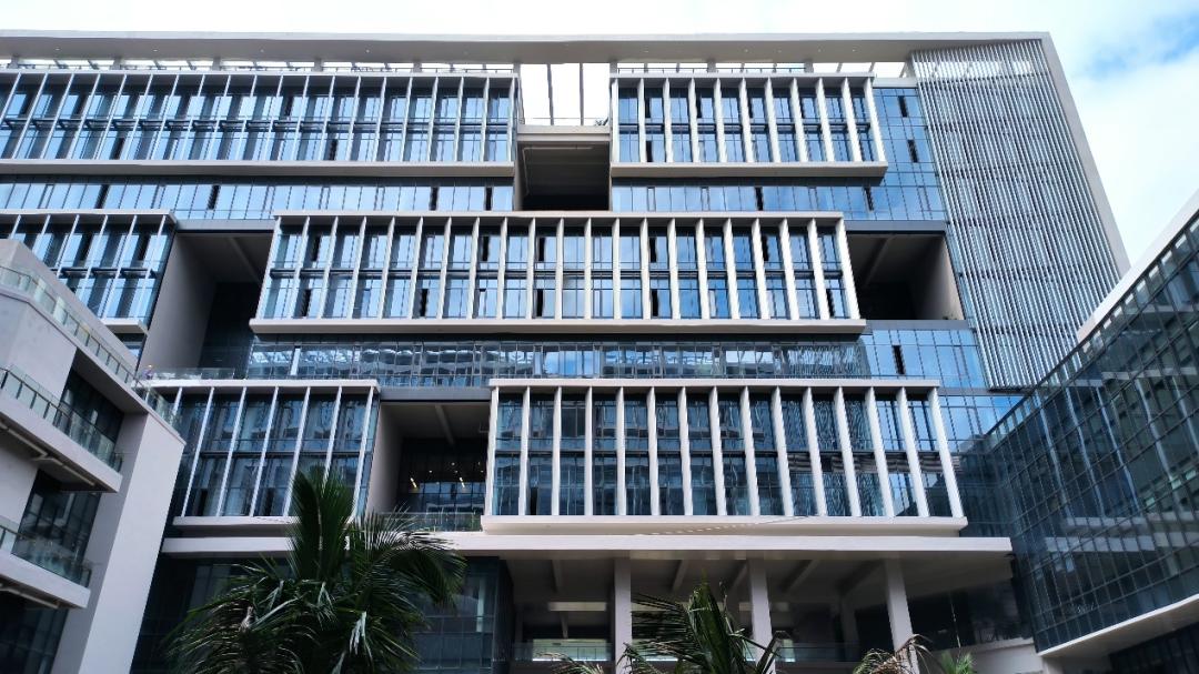 三亚崖州湾科教城公共教学区(一期)的1号楼、2号楼、3号楼主体结构采用预制叠合楼板、预制楼梯,围护墙和内墙隔墙采用轻质条板非砌筑等形式的预制构件,在装修方式上采用了全装修交付、集成卫生间、管线分离的方式。同时,会议中心(1号楼裙房)、综合服务楼3号楼采用定型装配式模板施工方式。更绿色、更低碳、更环保