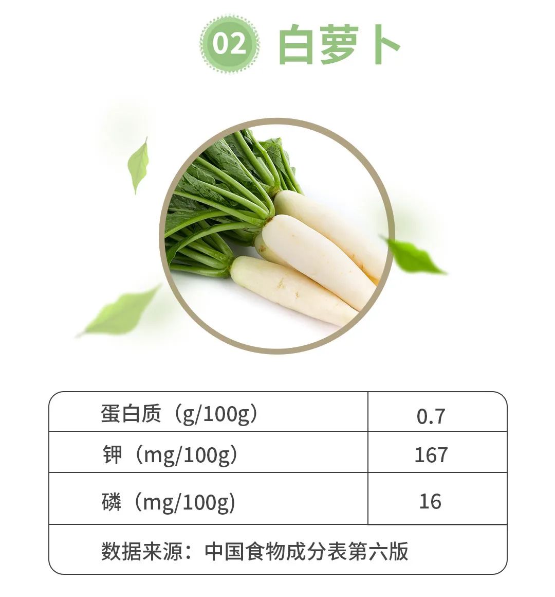 2.萝卜含水丰富,严重水肿、少尿、透析需要限水的肾友们需要注意,吃了萝卜,水就相应的少喝一些。