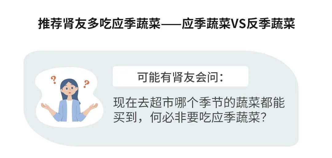 尽管随着科技发展,无论哪个季节,想吃什么蔬菜,走进超市基本都可以买到;但反季蔬菜一般都是在大棚内种植,由于阳光、温度等条件不充分,因此部分反季蔬菜可能使通过人为打药物催熟而成,其中的矿物质、维生素等含量不一定有应季蔬菜中的含量高。除了营养素含量问题,应季蔬菜的口感普遍也会比反季蔬菜的口感好;相信不少肾友自己也有亲身体会,应季的西红柿,酸甜味道会更足!