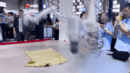 观众随手拿起一件T恤丢入操作台,机械手臂自主识别衣物颜色尺寸材质等信息,随后完成抓取,展开,折叠等全流程动作,整个过程约2—3分钟。在2024世界人工智能大会上,上海非夕机器人科技有限公司(简称“非夕科技”)所孵化的企业穹彻智能,在完全开放的环境中,向观众们展示了一款“叠衣服机器人”,表明了机器人未来走进家庭生活的可能性。