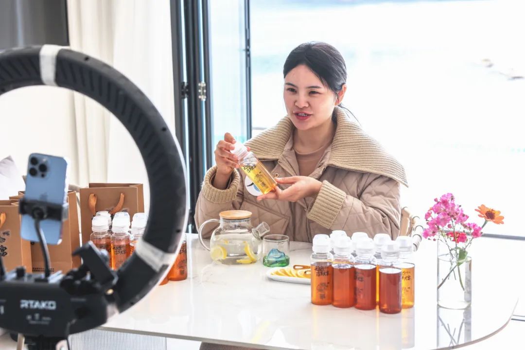 “淳蜜共富”行动启动后,全县114名新的社会阶层人士第一时间踊跃报名,对有意愿有能力自养蜂种的农户,县新联会组织专业人士,为其提供养蜂全过程免费技术指导;为解决蜂蜜的销售问题,县新联会组建有市场营销经验的销售团队,发起公益助农销售活动,不断拓宽销售渠道。为了能更快更及时地销售蜂蜜,淳安县新的社会阶层人士发起了“助蜜帮帮团”公益活动。依托大杭州甄选助农平台,以开设“千岛湖同心共富蜜”网店,拍摄“中华蜂蜂蜜的N种吃法”“我们开蜜啦”视频等方式,不断吸引全国各地的客户下单购买并参加公益认领蜂种活动。同时,依托当地的“名·宿同心荟”以及专业的直播团队,进行“线上+线下”的助农直播带货。截至目前,累计开展直播80余场次,直播销售蜂蜜达1200斤,多形式、多渠道助力蜂蜜销售。