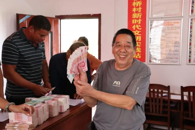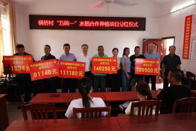 9月5日,象州县粮食生产“土地入股”合作生产经营分红现场会在寺村镇举行。横桥村委“带田”入股的“股东”你一言他一语,挤满了开会场地,脸上喜气洋洋。随着主持人一声令下,当日分红56.96万元。土地入股,当季分红,让横桥村委的村民尝到了“红利”甜头。