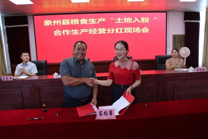 白崖村、谭村、崇山村股份经济合作社与广西象仓米业有限公司等企业签订“土地”全过程托管合作协议。