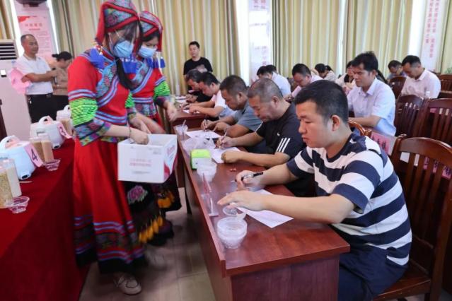 水稻新品种米质品鉴。副县长覃会雅参加会议并讲话,各乡镇分管领导、相关企业和合作社负责人,村委代表参加了会议。