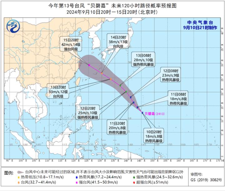 预计,“贝碧嘉”将以每小时25公里左右的速度向西北方向移动,强度逐渐增强,趋向我国东海海面。