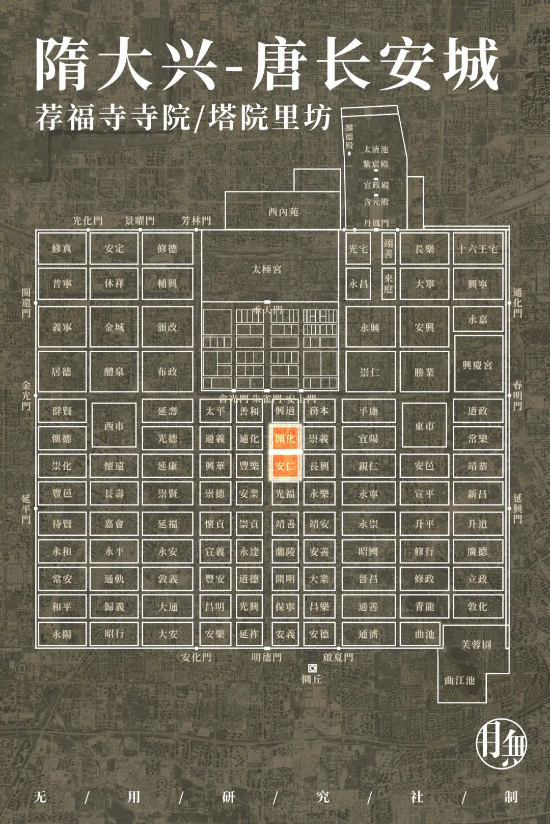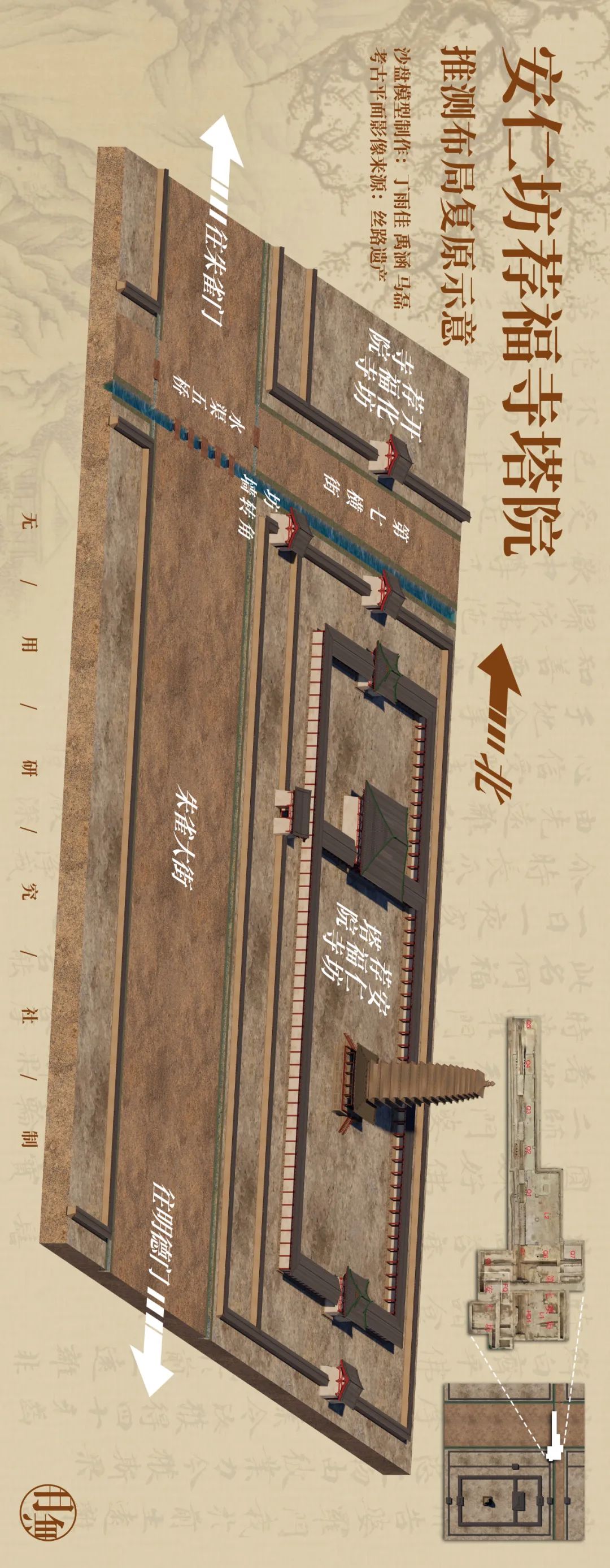 塔院自成一格,将匿藏经书的区域和主要寺院分割,使得二者在后世的寺院发展中出现了分化。而若将长安城明德门至朱雀门遗址南北连线,会发现塔院就紧靠着朱雀大街。