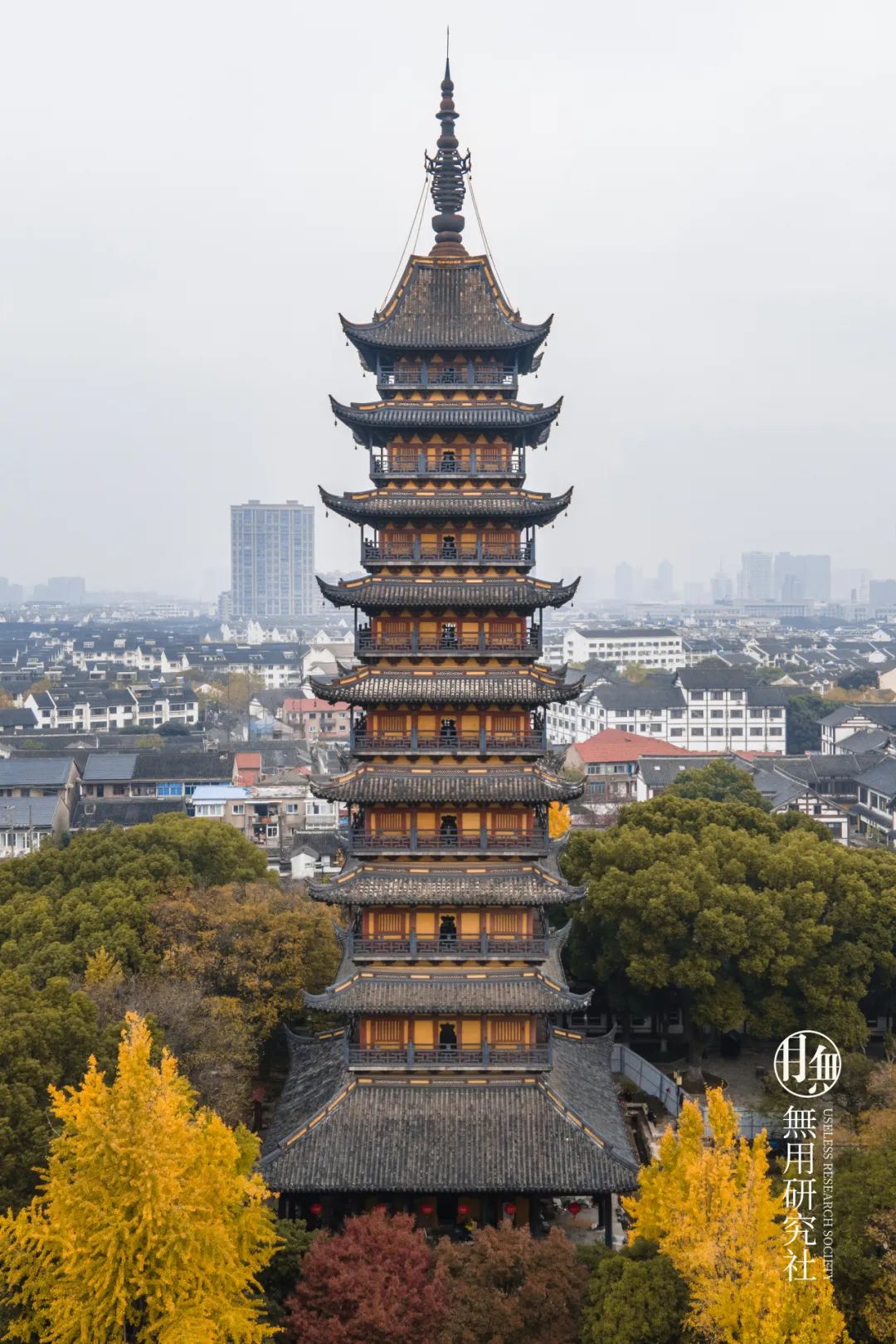 远远看去,寺院房屋遮蔽了一层,整个塔就几乎都是出檐构成的。