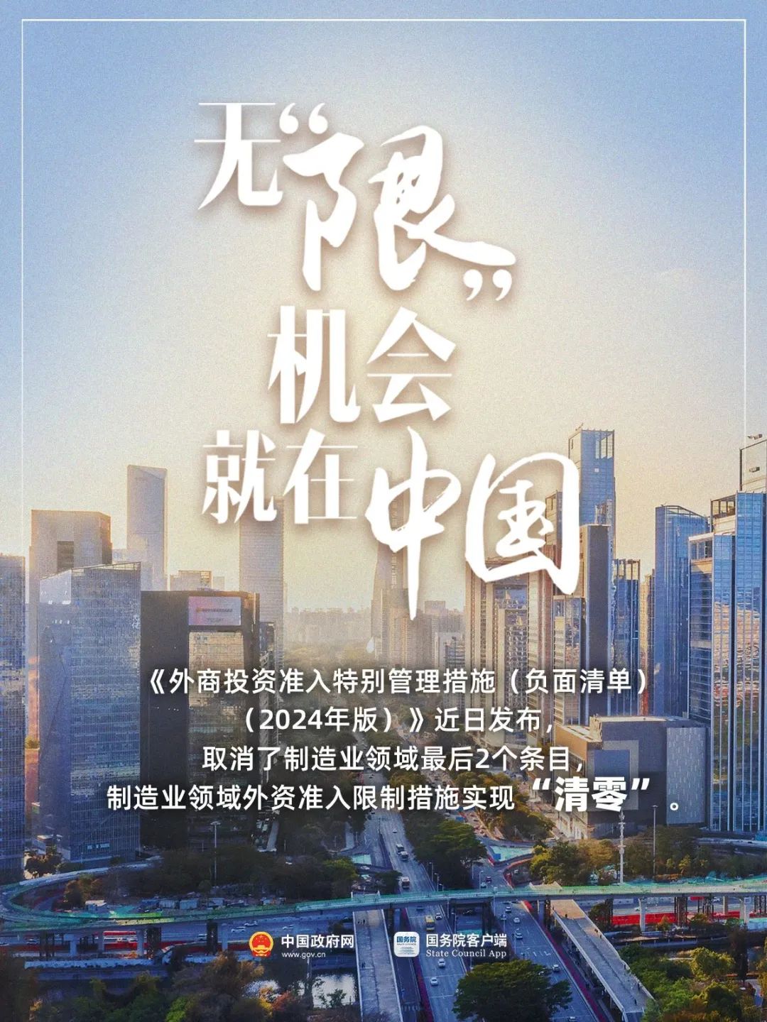 国家发展改革委、商务部发布《外商投资准入特别管理措施(负面清单)(2024年版)》,自2024年11月1日起施行。2024年版全国外资准入负面清单限制措施由31条减至29条,删除了“出版物印刷须由中方控股”,以及“禁止投资中药饮片的蒸、炒、炙、煅等炮制技术的应用及中成药保密处方产品的生产”2个条目,制造业领域外资准入限制措施实现“清零”。>>详情:中国政府网