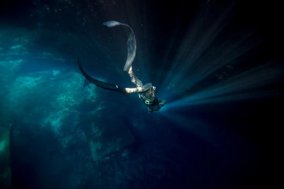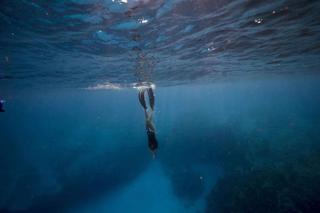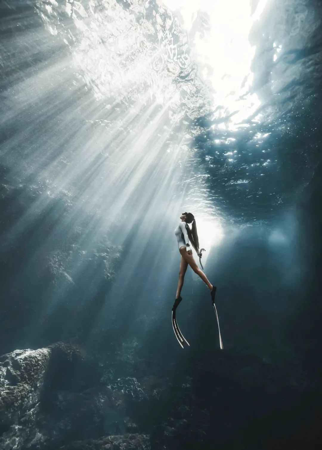 当自由潜水员将脚蹼浸入水中的那一瞬间,他们的身心就注定被牢牢锁住了。