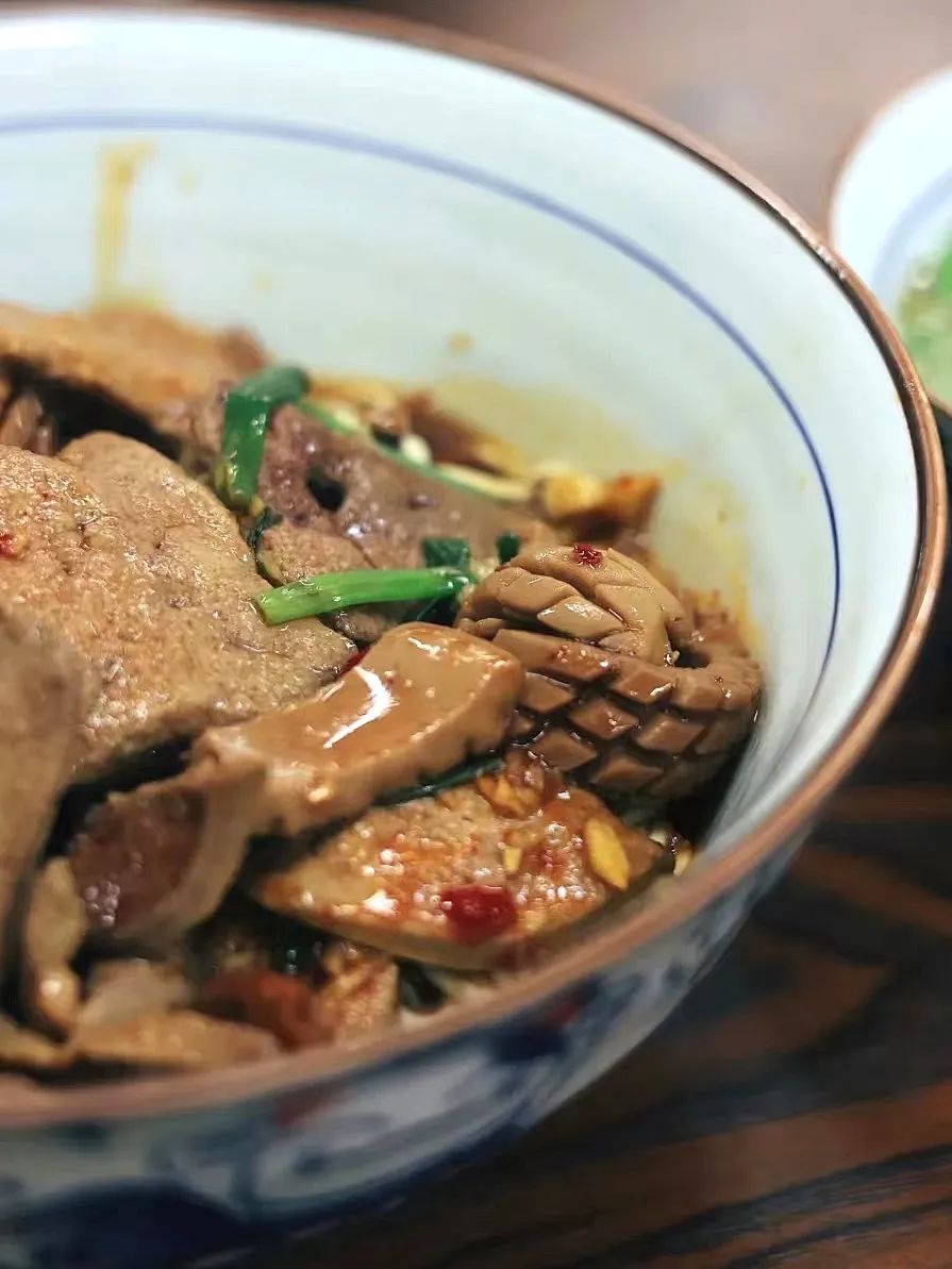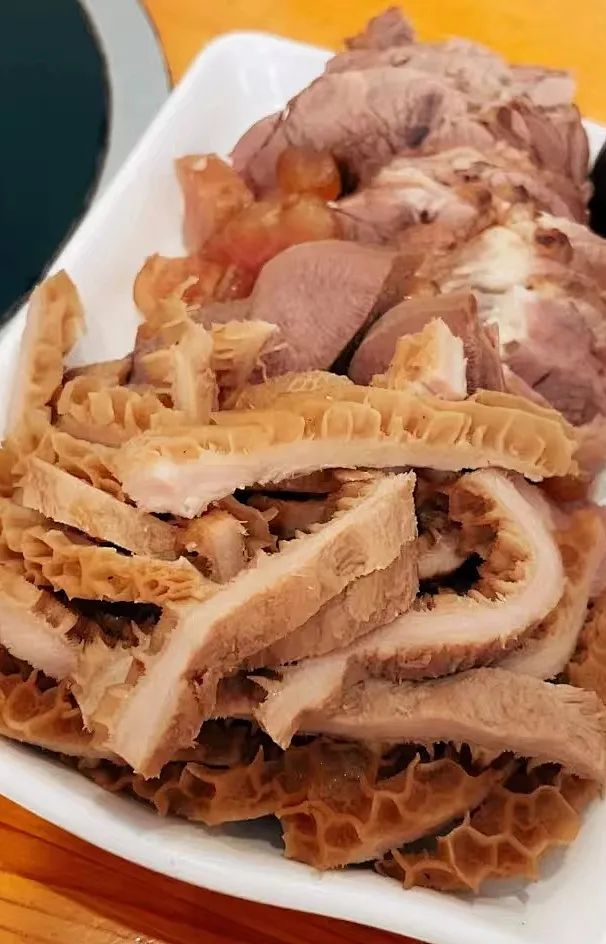 还有弹性十足的金钱肚,没有多余的油脂,香气质朴;还有厚切牛舌,绵密而柔软的口感也人欲罢不能。这几样招牌除了冷吃,也可以给面当浇头,做个香喷喷的招牌三拼面,或者是下火锅,都很绝!