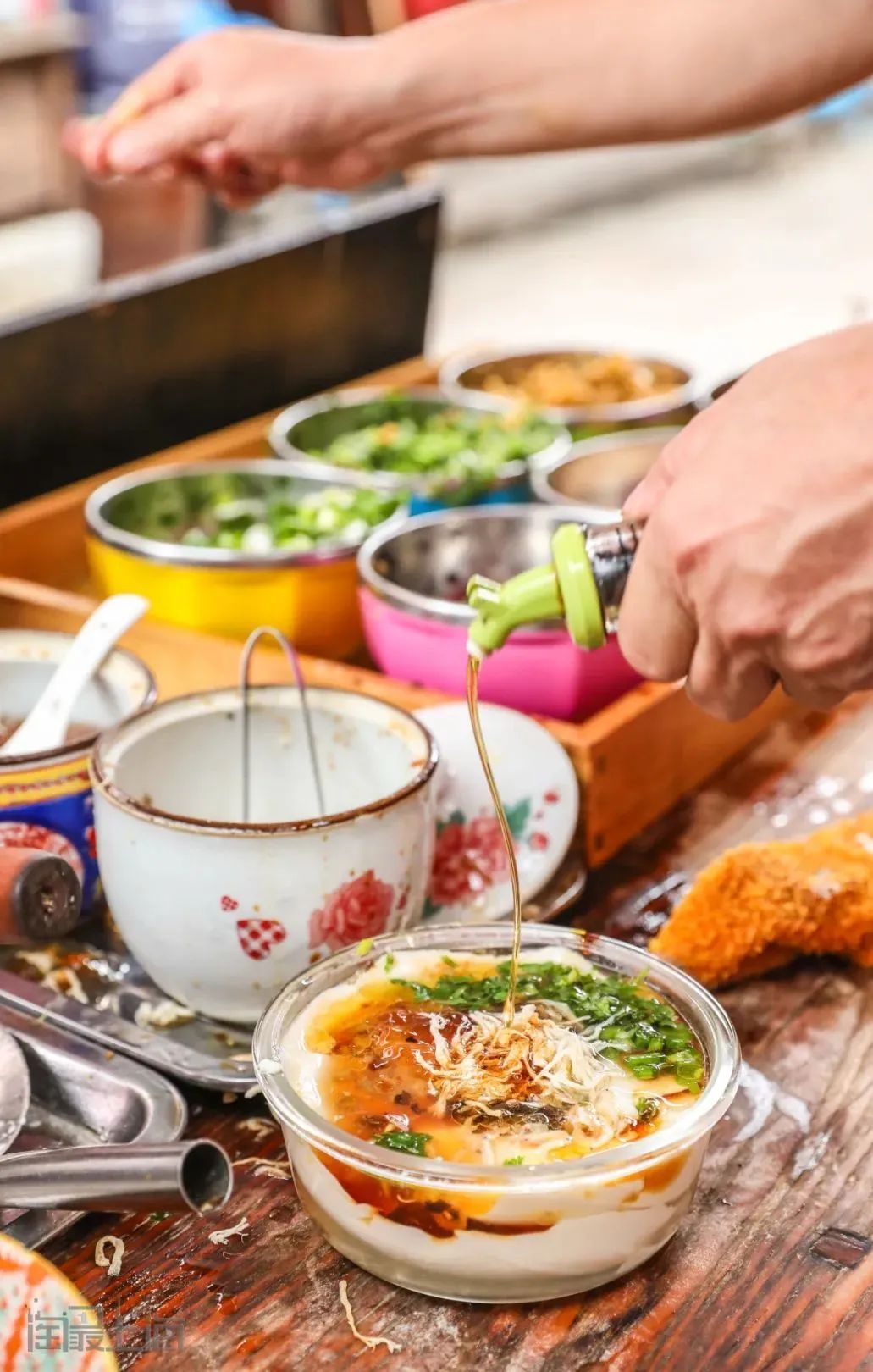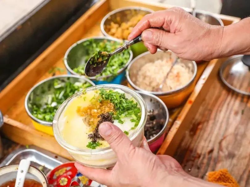 吃时有讲究,要先给豆花“按摩”一下,千万不能拌着吃,不然豆花碎掉口感就不好了。迫不及待尝一口,鲜嫩爽滑!关键是这样一碗只要10元左右,有时候下午一两点来钟,豆花卖光就不做了,想吃的话得趁早~