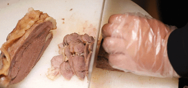 他家的牛腱子都是精选的黄牛,卤制的过程中不加鸡精和味精,甚至连上色的老抽都用四川红糖代替。牛腱子现点现切,切面纹路清晰,卤香四溢。配着三分酱油七分醋的酱料,轻点一下,原汁原味、简单纯粹,吃到嘴就是新鲜。