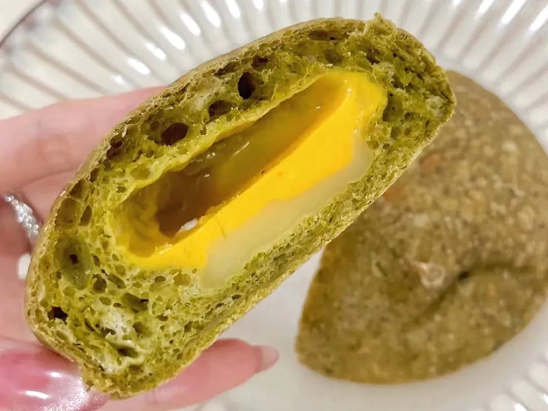 「罗勒芝士」也是店里的人气选手,清新的罗勒香气,遍布松软面包,内里夹着切达芝士和大孔奶酪,双重口感,恰到好处,这种只出现在经典青酱意面的组合,做成面包也一样有奇妙的层次感。
