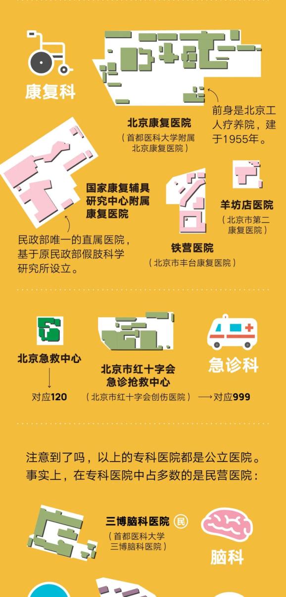 当然,你更熟悉的可能是医院的级别。北京的医院分为三级(又细分为三级甲等、三级乙等、三级无等)、二级(又细分为二级甲等、二级乙等、二级无等)和一级(又细分为一级甲等、一级乙等、一级无等),受制于篇幅,本文暂且只展示三级和二级医院。