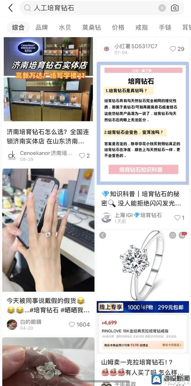 在网络平台,不少商家及消费者发布培育钻石科普、购买等信息。“我们是培育钻石的源头厂商,工厂在河南,2012年之前,只生产小碎钻,达不到克拉级别,2012年之后才开始生产克拉级别的钻石,能达到高净度、高品质的。”该厂商告诉记者,此前,该厂家制造培育钻石批发出口至印度、菲律宾等地,并没有开启国内的零售市场,而近年来,包括该厂在内的行业内多家厂商开始重视国内市场,竞争也逐渐激烈起来。