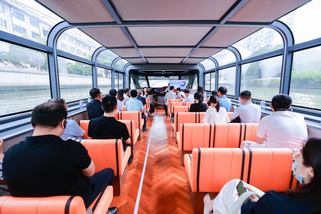 上午,来自全国各地的十余位生物医药产业的企业家们踏入了苏河湾功能区,开启一场“走进苏河湾”的参观调研之旅。企业家们乘坐苏州河游船,一览苏州河静安段“一河两岸、中西合璧”的独特滨水风光,四行仓库抗战纪念馆、上海总商会旧址、苏河湾绿地等标志性景观尽收眼底。大家纷纷举起手机,记录下一幕幕新旧交融的场景。