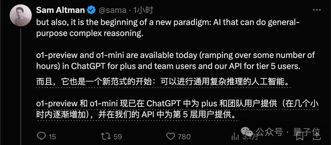 CEO奥特曼称它是一种新范式的开始:可以进行通用复杂推理的人工智能。