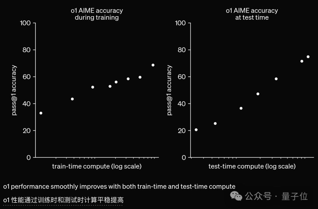 随着更多的强化学习(训练时计算)和更多的思考时间(测试时计算),o1 的性能持续提高,新的Scaling Law诞生了。