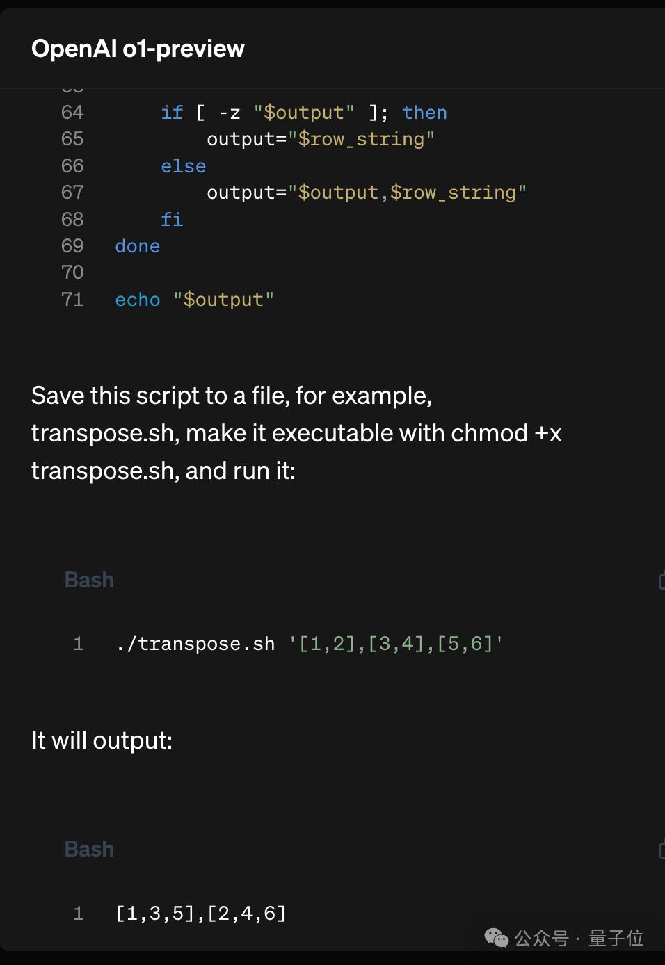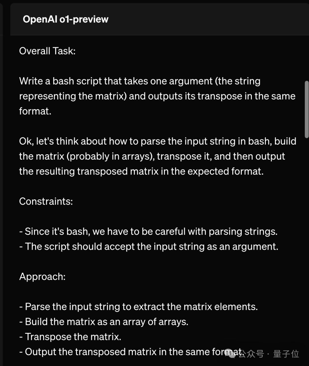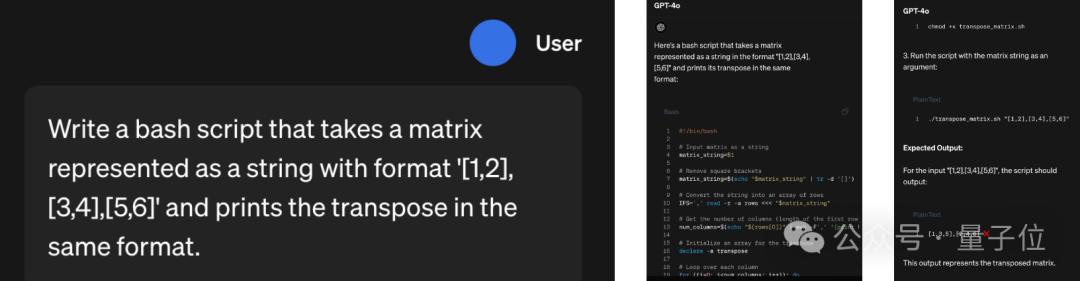 o1思考起来是什么样子?可以从官网示例中的编写Bash脚本的编程任务一窥究竟。首先作为对比,GPT-4o会直接就开始写代码,遗憾得到错误结果。