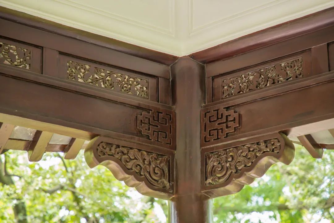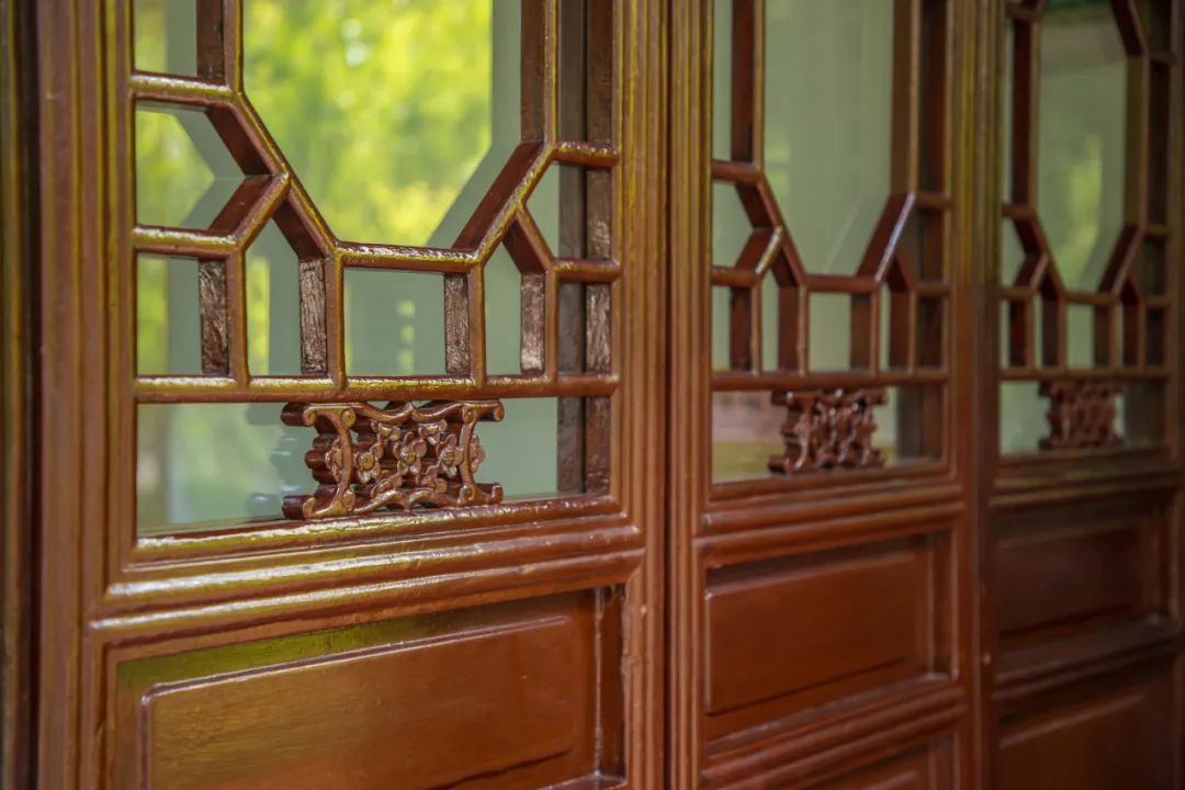 古猗园广漆修缮上,经过专家组等各方综合讨论,最终确定了“半哑光”的式样,刚刚修复完成的广漆并不是最终的颜色,随着时间的推移方显真正的效果。