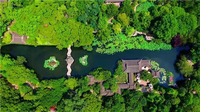 ▲古猗园鸟瞰古猗园的亭台楼阁多临水而建,与水景相互映衬,充分体现了“亭台到处皆临水,屋宇虽多不碍山”的意境,水榭曲廊造型秀美精致,既是风景点缀,也是观赏游览驻足之处;而园中品类丰富、数量繁多的竹观则使古猗园成为了上海观赏竹品种最为丰富之地。