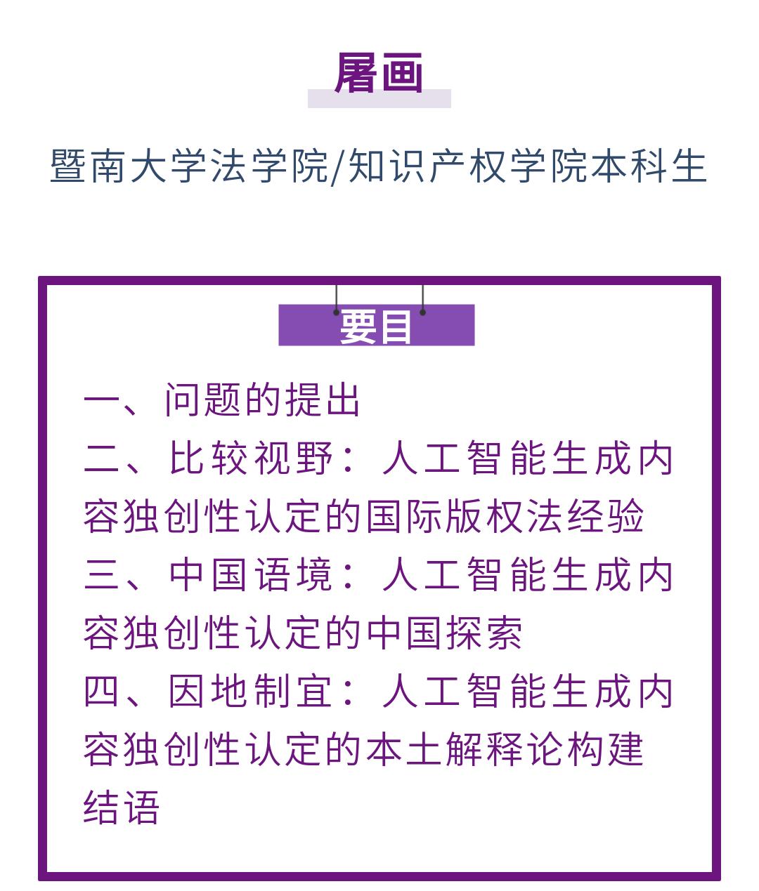 原标题:《屠画|人工智能生成内容独创性认定的国际版权法经验与中国本土镜鉴》