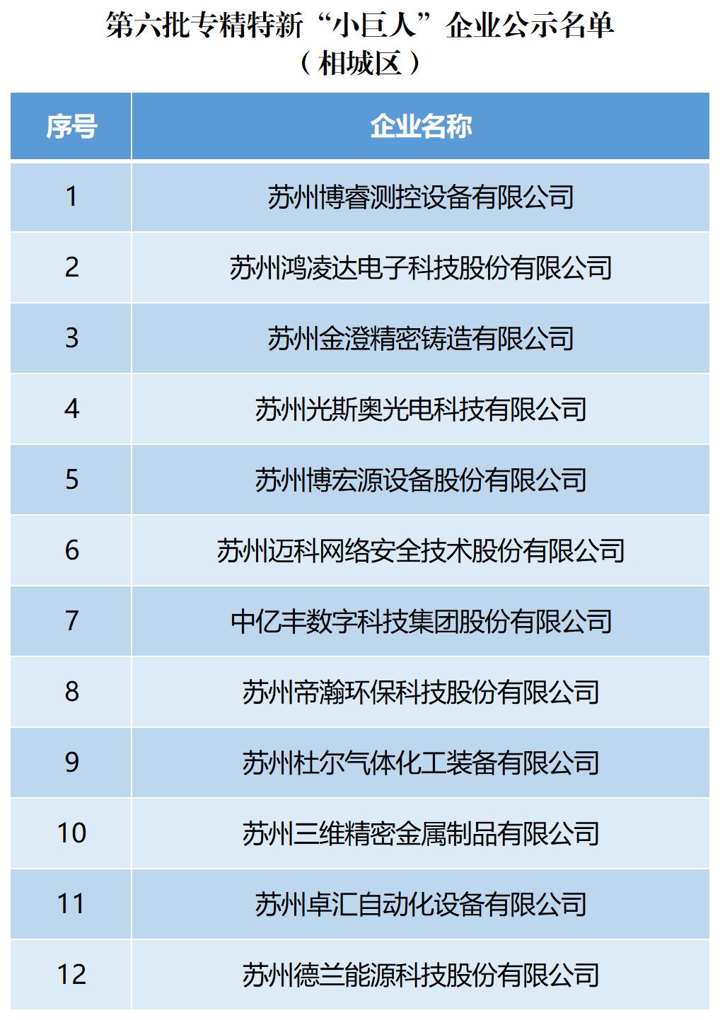 相城区新增12家专精特新“小巨人”企业