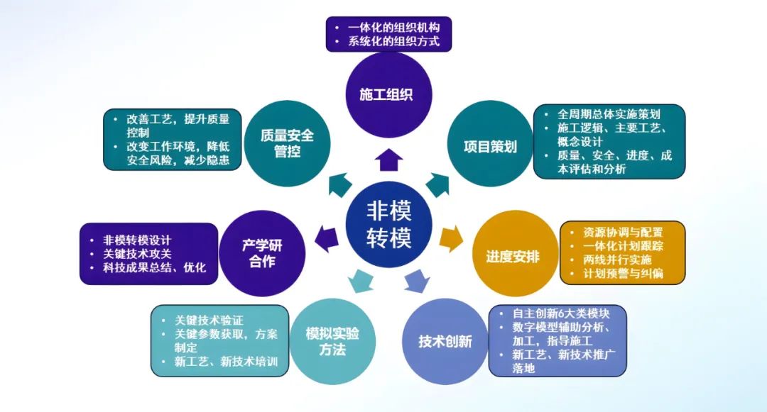 (1)围绕模块化建造,全面实现技术突破与创新,完成新工艺、新材料的推广实施。同时,作为土建施工方,积累了大量大型结构模块设计、施工组织的经验,培养了大批人才。