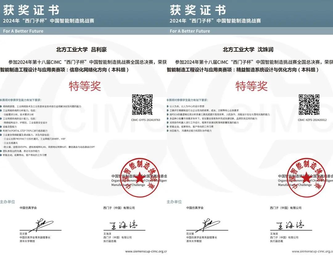 由电气与控制工程学院教师李超、翟维枫指导的“NCUT远航”队和“NCUT智海”队分别获信息化网络化赛项国家特等奖和精益智造系统设计与优化赛项国家特等奖;由李超、修伟杰指导的“NCUT风荷”队获离散行业运动控制赛项国家一等奖,由机械与材料工程学院闫文辉、郑彩丽老师指导的“智航变形旋翼螺旋桨”队获自由探索赛项国家二等奖。