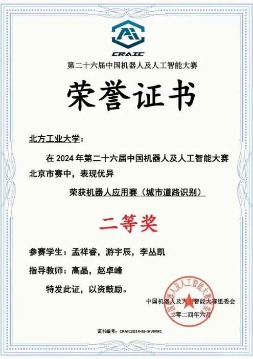 其中,中国机器人及人工智能大赛的“城市道路识别”赛项总决赛为线上举办,信息学院人工智能专业学生获国家级二等奖1项,北京市一等奖1项,二等奖1项。
