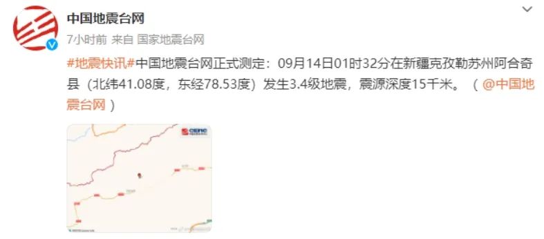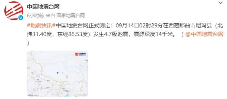 中国地震台网正式测定9月14日1时32分