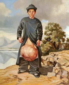 何鲁(Hoo Loo),中国人,其生殖器上长有一个巨大的肉瘤,1828年测量时,此瘤周长为44英寸——纵36英寸、横36英寸,重达40磅。而当其1831年上手术台手术后,切除的肿瘤更是重达56磅。