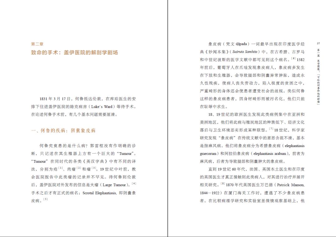配有48幅珍稀历史图片。以英国的医学报告、媒体报道、政治漫画、何鲁画像和博物馆展览为基本史料,将何鲁置于19世纪欧洲外科学生态环境考察东西方医学的真实差异,为读者展现了何鲁事件的鲜活场域和广泛影响。