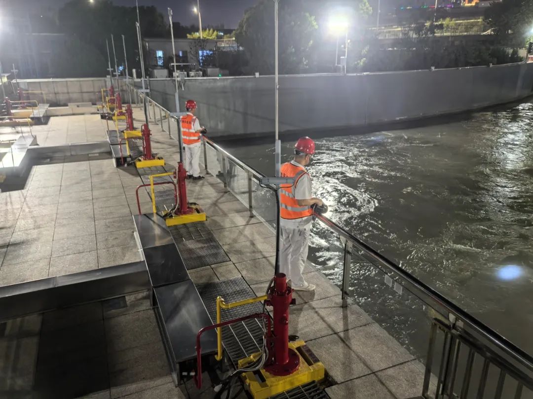 闵行区水利管理所检查了在建水闸项目施工现场和区管水闸,重点检查闸门、启闭机、水泵及自动化监控设备的运行情况,做好极端天气下的引排水工作。