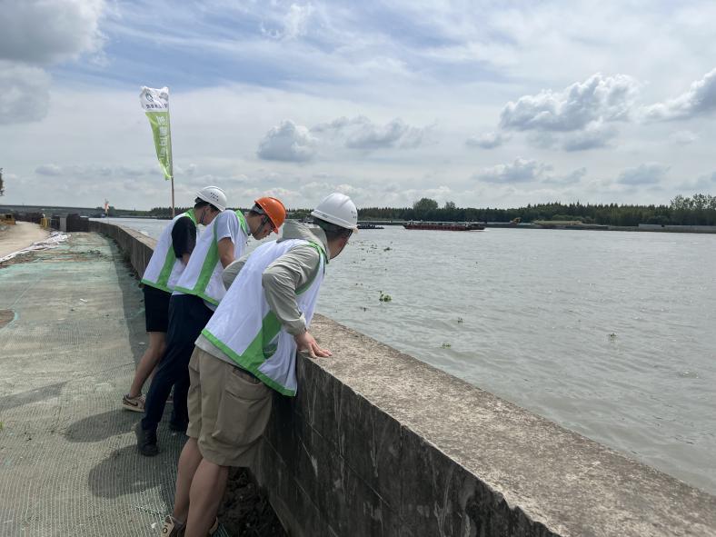 青年突击队对黄浦江中上游防洪能力提升工程(一期)进行汛前检查6