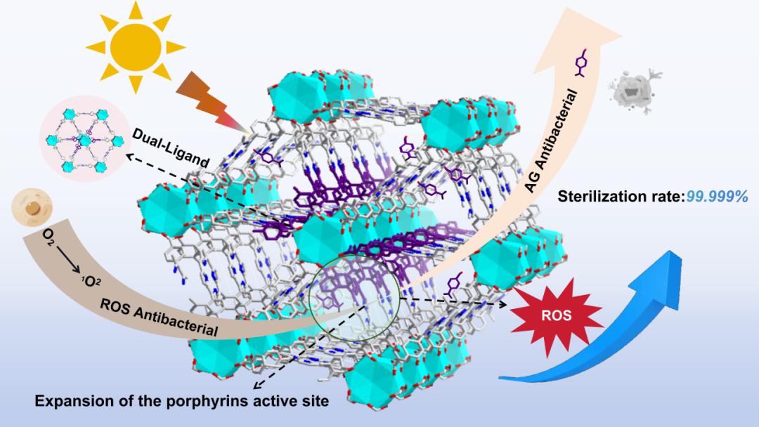 近日,食品学院食品冷链与物流品质控制谢晶教授团队丁兆阳副教授在《Small》(IF =13,Q1)上在线发表题为“Enhanced Stable and Efficient of Dual-Ligand Zirconium-Based Metal-Organic Frameworks for Synergistic Photodynamic Inactivation”的研究论文。该研究首次通过双配体策略,开发出具有增强光动力性能的金属有机框架材料,能够在多种环境下具备高效抑菌和杀菌能力,在实际应用中灭菌率达到了99.999%。该研究还有助于系列功能材料的开发,为食品抑菌保鲜提供新型纳米材料平台。