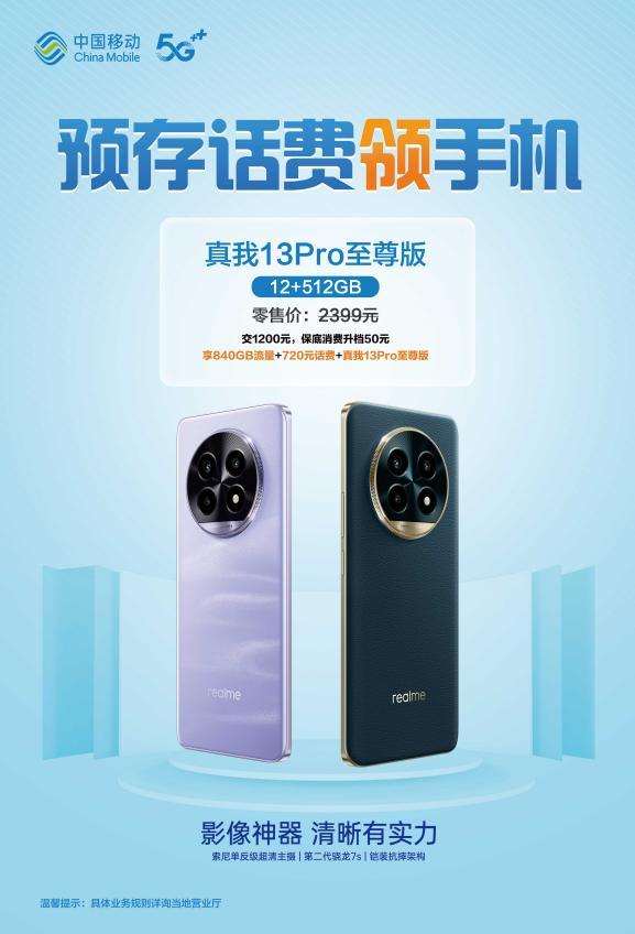 预存1200元话费,订购30元/月大礼包(720GB流量年包+全光WiFi(FTTR)一主一从+自选权益),领荣耀X50 Pro/真我13 Pro至尊版