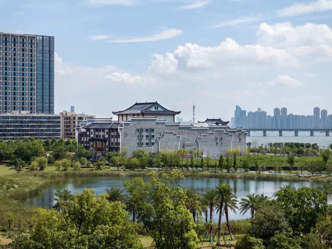 江西省赣剧院新院位于赣江之滨、九龙湖畔,在江西省政府重点文化项目“江西省文化大码头”地块内。该地块旨在通过重建江西省赣剧院,打造集赣剧文化、文创产品、购物体验、休闲娱乐、教育、旅游等多业态于一体的“文化大码头”,使之成为江西省的一张靓丽文化名片。新院位于其中央核心位置,项目设计也是基于整个地块的规划设计展开的。02