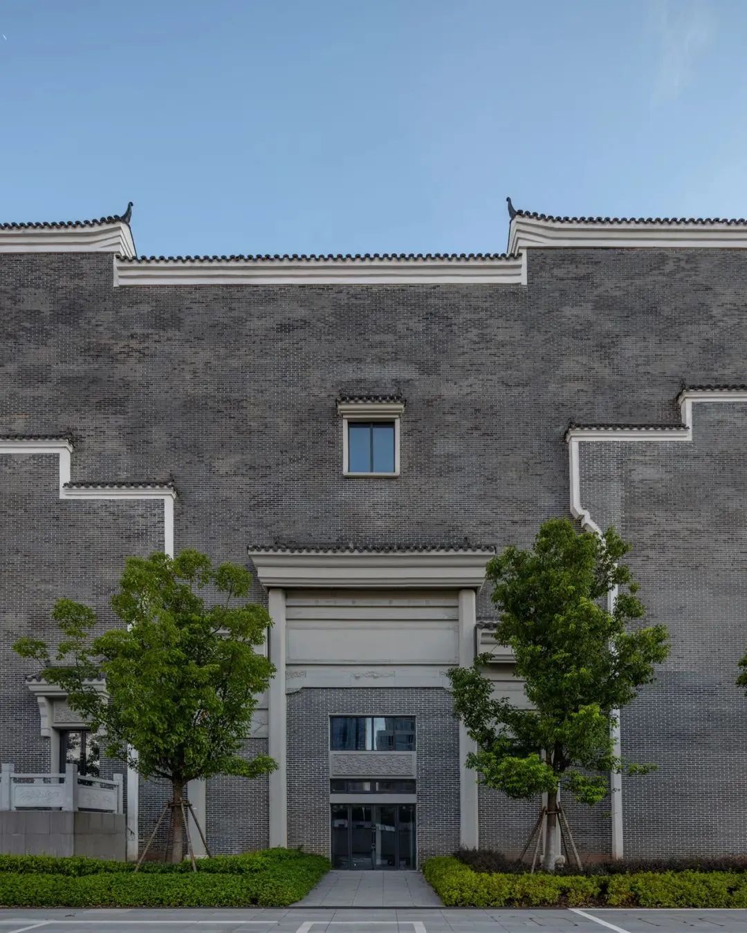 主入口设计赣剧古戏台被巧妙转化为剧院的主入口形式,这一隐喻设计不仅强化了赣剧作为文化核心的地位,更预示着这里就是赣剧艺术重放光彩的舞台。采用中式建筑标准的三段式形式——上部三层屋顶、中间对称五开间门窗、底部石材基座及大台阶,两边的故事石雕还带有著名的乐平戏台的影子,既保留了传统风貌的精髓,又赋予了建筑新的生命力。