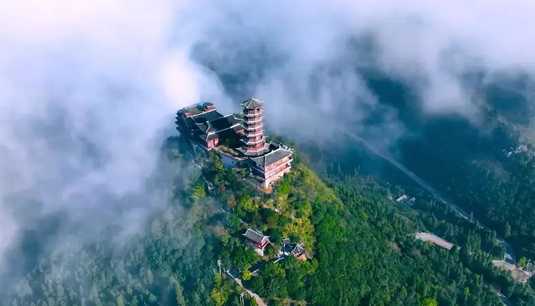 丹霞山 供图:盘州旅游随着岁月流转、世事变迁,寺庙破败不堪。上世纪八十年代,当地重建了护国寺,有山门、弥勒殿、大雄宝殿、玉佛殿、观音堂等殿宇,再现了丹霞佛光的壮丽奇观。