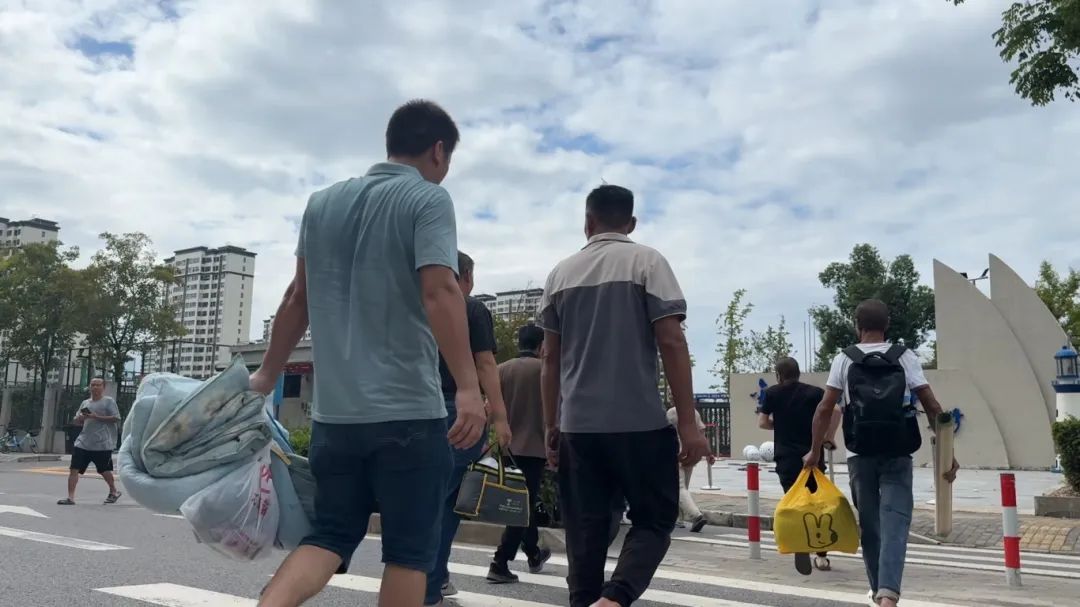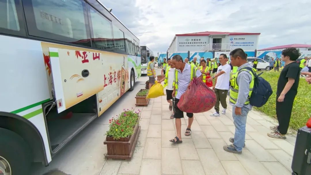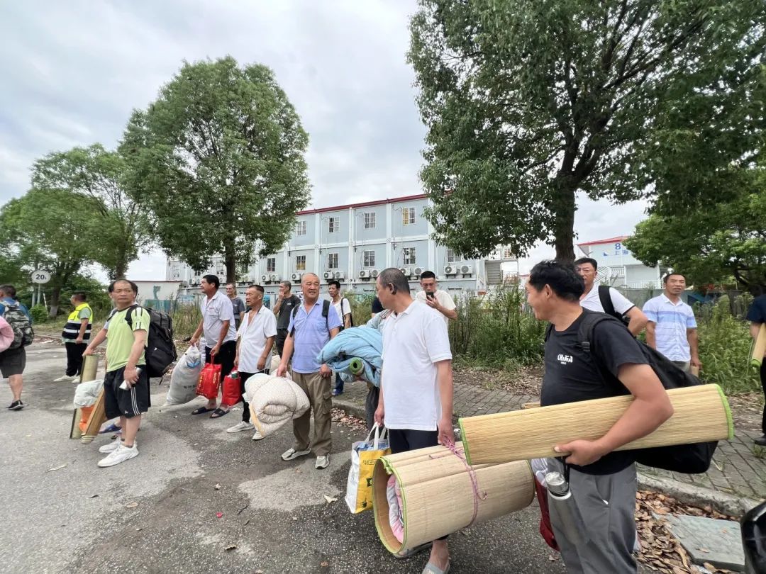 下午1点,记者在上海乐高乐园度假区项目工地看到,准备撤离的建筑工人已经打包好简易被褥和生活用品,在工作人员的引导下分批次有序撤离。为确保人员安全,建筑工人将乘坐项目方统一安排的转移大巴前往避险转移安置点。