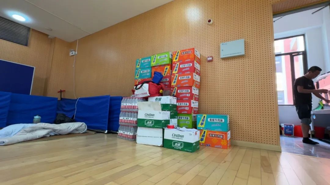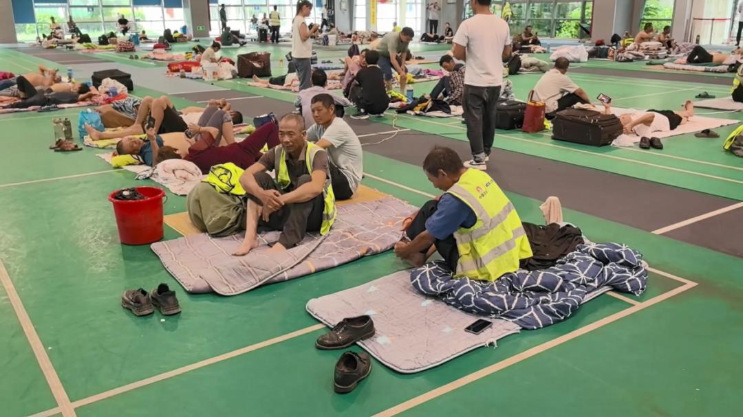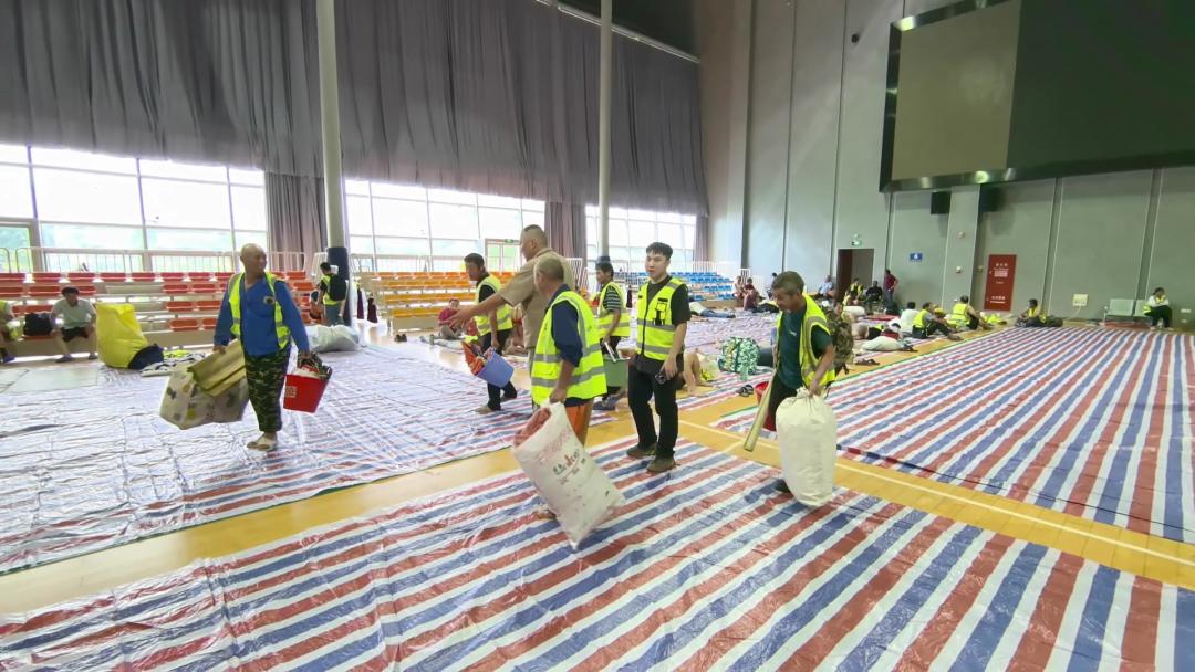 下午2点,最后一批转移车辆载着工人来到了金山区体育馆避险转移安置点。在安置点内,转移安置过来的建筑工人已打好了地铺,馆内电源、照明设备、饮用水和食品等基本生活物资也配备齐全。对于此次安置点的准备情况,大家都表示很满意。