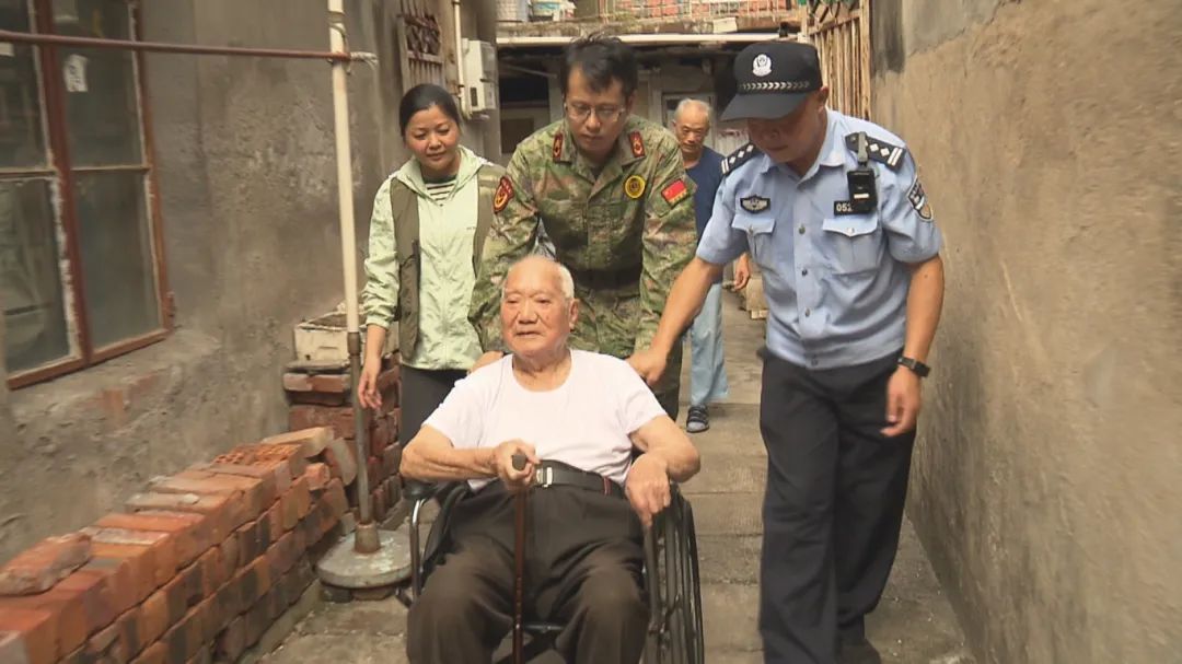 下午2点,记者在石化街道东村居民区看到,工作人员正细心地将一位老人搀扶到一楼,并准备好了轮椅,将他安全平稳地送到安置转移的车辆。
