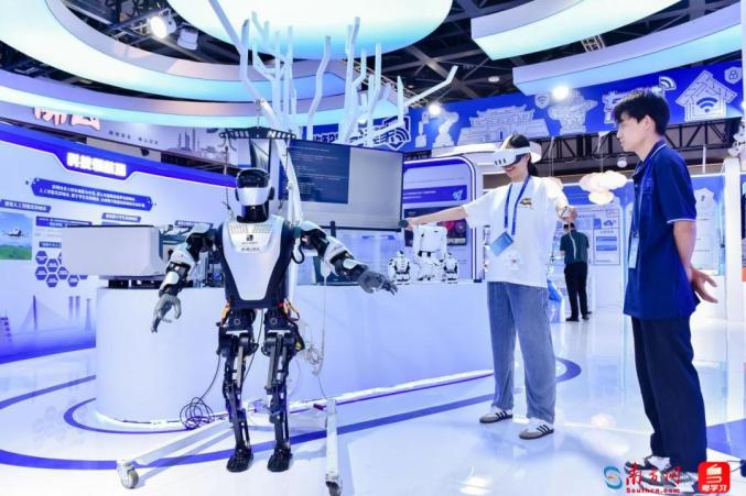 在大湾区·大未来专区,各种人形机器人吸引着观众目光。深圳企业优必选科技带来的人形机器人Walker化身导览员,为嘉宾介绍展厅陈设,并跟观众握手、比心互动。“机器人会进入到生活中的方方面面,也能够赋能千行百业。在此基础上,数据安全以及个人隐私保护尤为重要。”优必选首席品牌官谭旻强调。